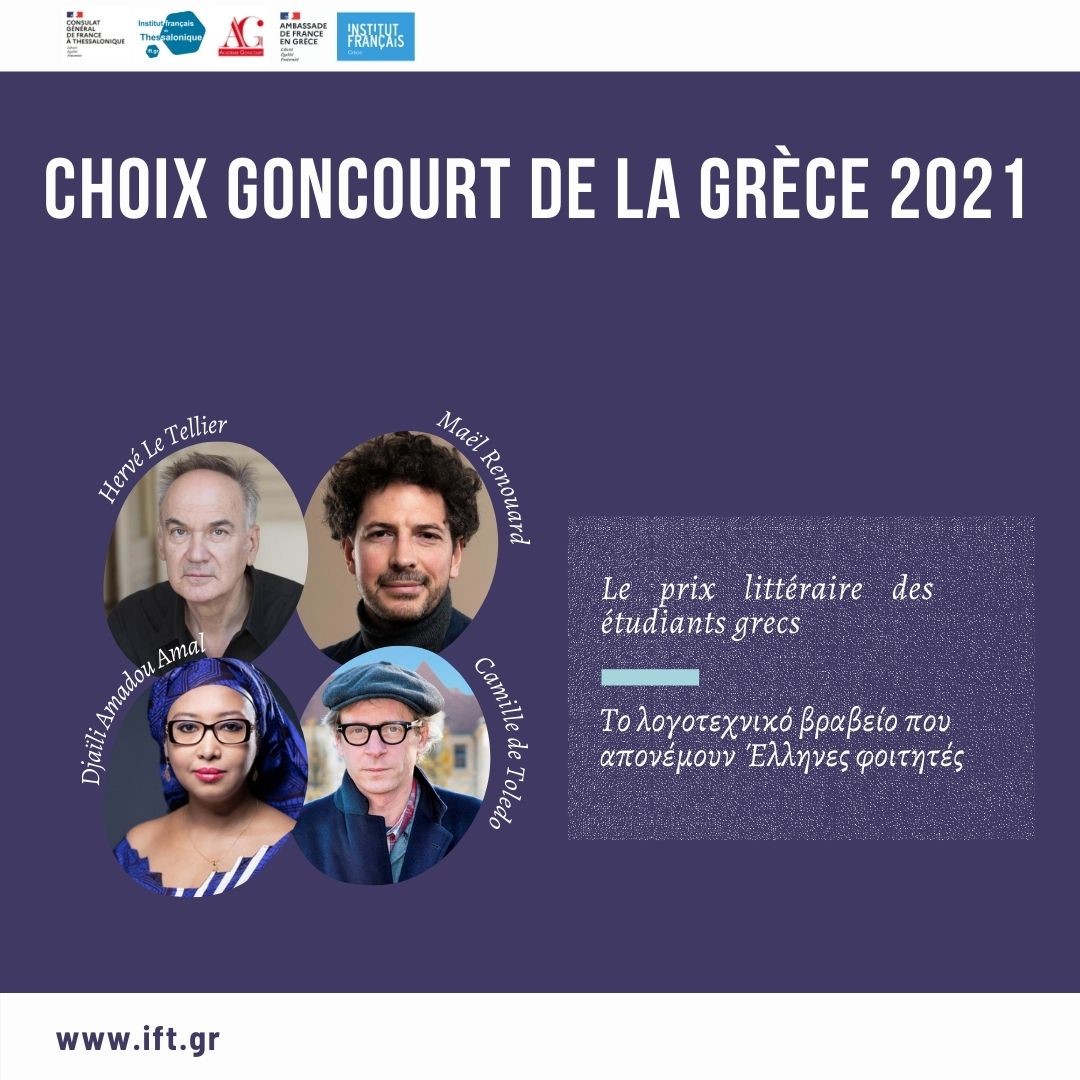 Οι 10 επιτροπές του Choix Goncourt της Ελλάδας έχουν διαβάσει τα μυθιστορήματα των τεσσάρων φιναλίστ του Goncourt 2020 – Thésée, sa vie nouvelle του Camille de Toledo, Les Impatientes της Djaïli Amadou Amal, Η Ανωμαλία του Ερβέ Λε Τελιέ (βραβείο Goncourt 2020 στη Γαλλίας) και L’Historiographe du Royaume του Maël Renouard – υπό την καθοδήγηση του Γαλλικού Ινστιτούτου. Το όνομα του νικητή θα αποκαλυφθεί την Πέμπτη 8 Ιουλίου στις 9 μ.μ. μέσω τηλεδιάσκεψης, παρουσία του συγγραφέα και του ακαδημαϊκού Pierre Assouline. Η συζήτηση θα πραγματοποιηθεί κεκλεισμένων των θυρών και τα αποτελέσματα θα ανακοινωθούν στα κοινωνικά μας δίκτυα και με την αποστολή δελτίου τύπου.