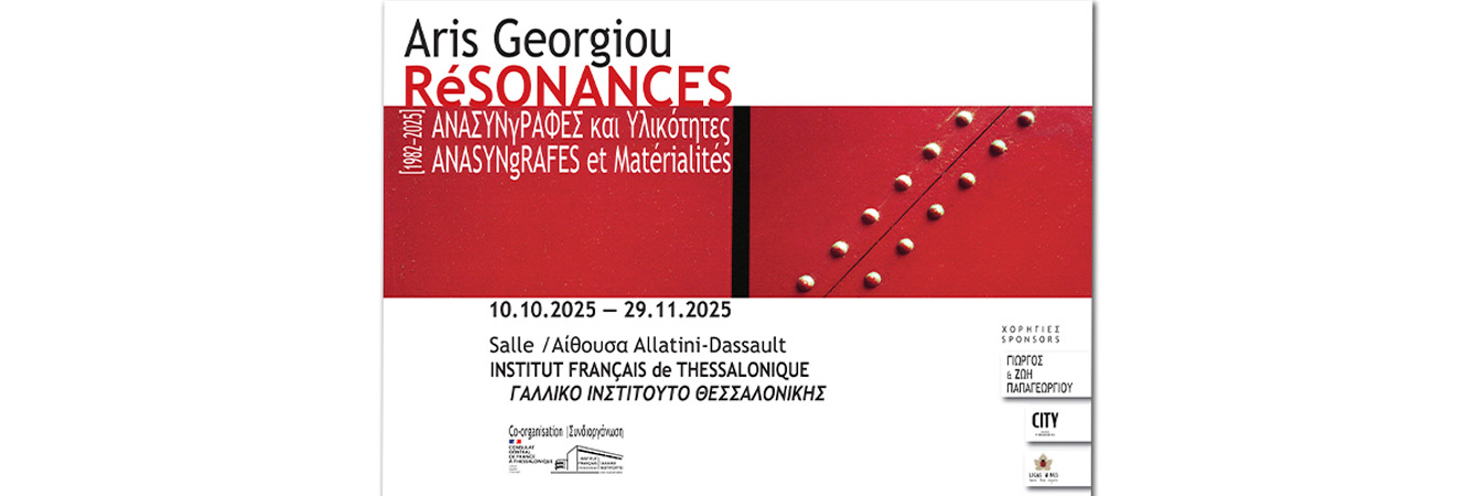 ACTUALITÉS Aris Georgiou : Résonances | ANASYNgRAFES et Matérialités 1982–2025 Exposition d’Aris Georgiou à l’Institut Français de Thessalonique Du 10 octobre au 29 novembre 2025