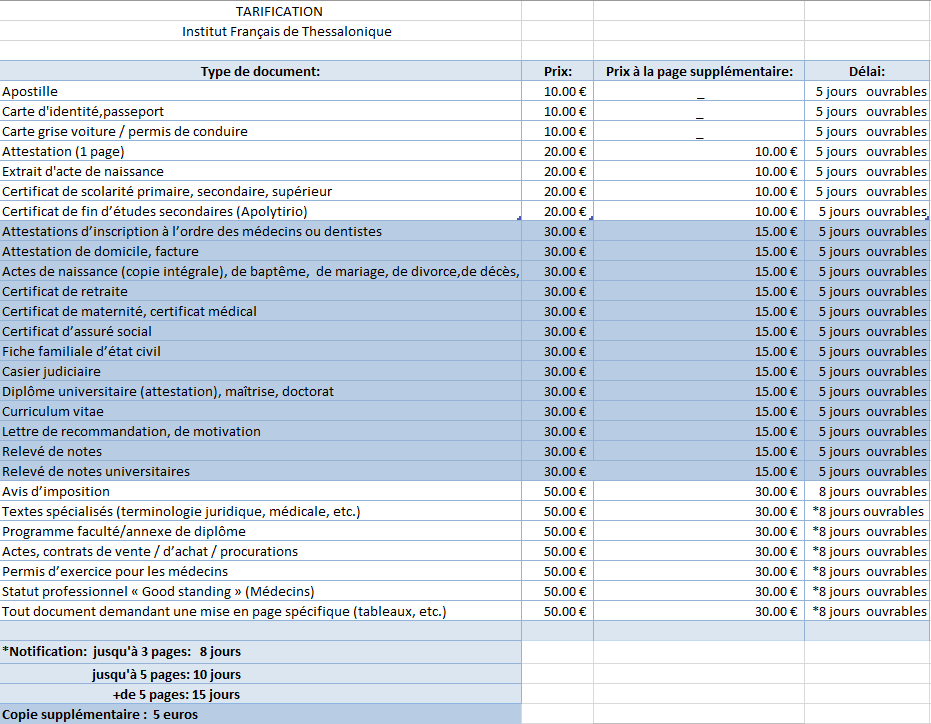 Le service de traductions de l’Institut français de Thessalonique, réalise des traductions en français ou en grec.
