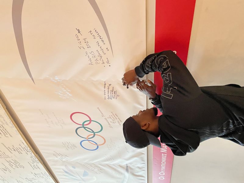 Il n’a pas caché son émotion de faire désormais partie de cette grande famille olympique, soulignant qu’il ressent une lourde responsabilité d’être entré dans l’histoire des Jeux en remportant une médaille dans un sport qui n’avait jamais été représenté auparavant lors des Olympiades. Après les Jeux de Paris, il a trouvé très symbolique sa visite à Thessalonique, revenant dans le pays d’origine des Jeux avec une médaille olympique. En voyant la vitrine qui sera dédiée à Paris 2024 encore vide, car les objets n’y ont pas encore été installés, Danny Dan a souhaité offrir au musée l’un de ses t-shirts dédicacés ! Il a également laissé sa signature sur le mur où figurent celles de tous les médaillés olympiques ayant visité le musée.