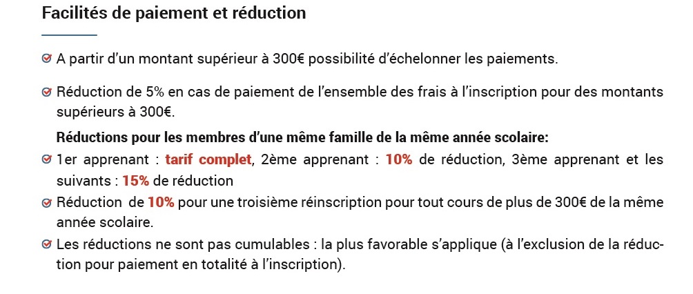 • Inscriptions et modalités de paiement
