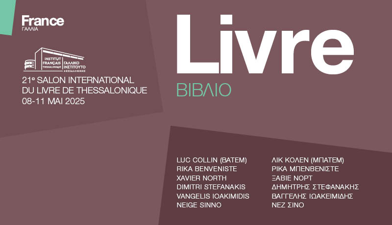 C’est avec cinq événements et six invités que l’Institut français de Thessalonique, en partenariat avec l’Institut français de Grèce, participe au 21e Salon International du Livre de Thessalonique, du 8 au 11 mai 2025.
