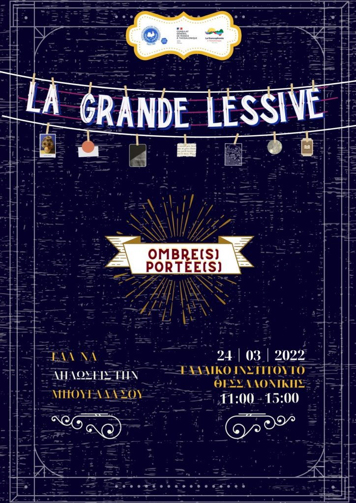 Uncategorised LA GRANDE LESSIVE On La Grande Lessive │ Jeudi 24 mars │9h00-15h00 Venez tous participer à « La Grande Lessive » de l’École française de Thessalonique ! COMMUNIQUÉ DE PRESSE Post Views: 455 Share FacebookTwitterGoogle+E-mail