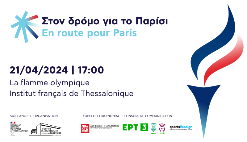 Le dimanche 21 avril, la flamme olympique, dans le cadre de son itinéraire en Grèce, arrivera à Thessalonique où elle passera la nuit. En ce jour de célébration à la fois pour la ville, la Grèce et la France, l’Institut français de Thessalonique avec le soutien du Consulat général de France, vous invite à vivre ce moment unique ou celle-ci fera son apparition devant le bâtiment historique du « Lycée ».