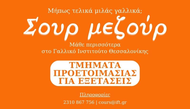 Το Γαλλικό Ινστιτούτο Θεσσαλονίκης προτείνει τμήματα προετοιμασίας για τις εξετάσεις DELF και DALF. Αυτά τα στοχευμένα τμήματα θα προετοιμάσουν αποτελεσματικά τους σπουδαστές στους διάφορους τύπους ασκήσεων που απαντώνται στις εξετάσεις.