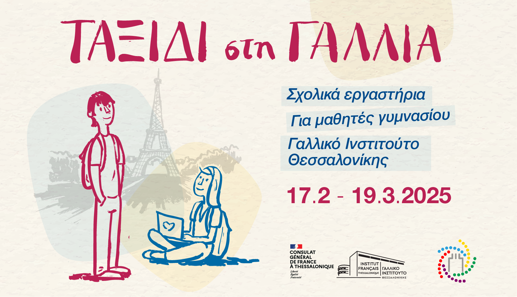 Το Γαλλικό Ινστιτούτο Θεσσαλονίκης προτείνει σχολικά εργαστήρια για μαθητές Γυμνασίου, με κεντρικό θέμα ένα φανταστικό ταξίδι στη Γαλλία.
